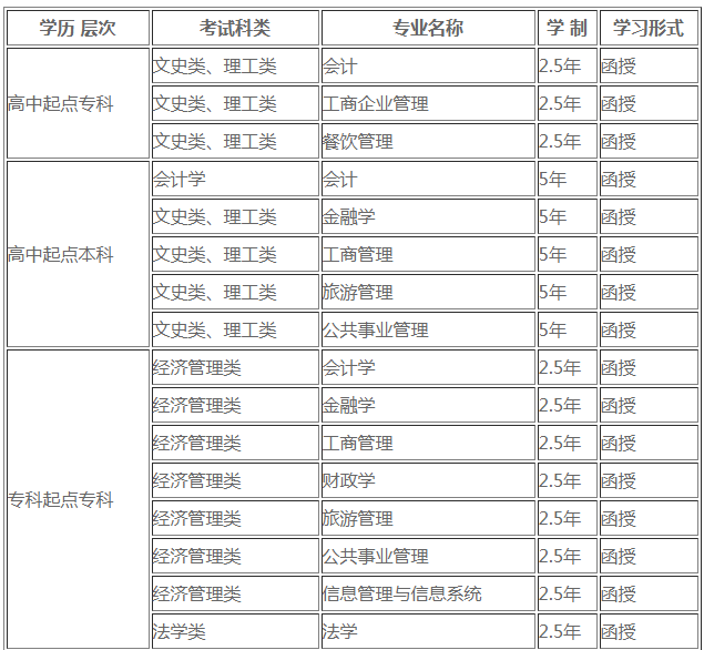 继续教育学院成人教育专业设置
