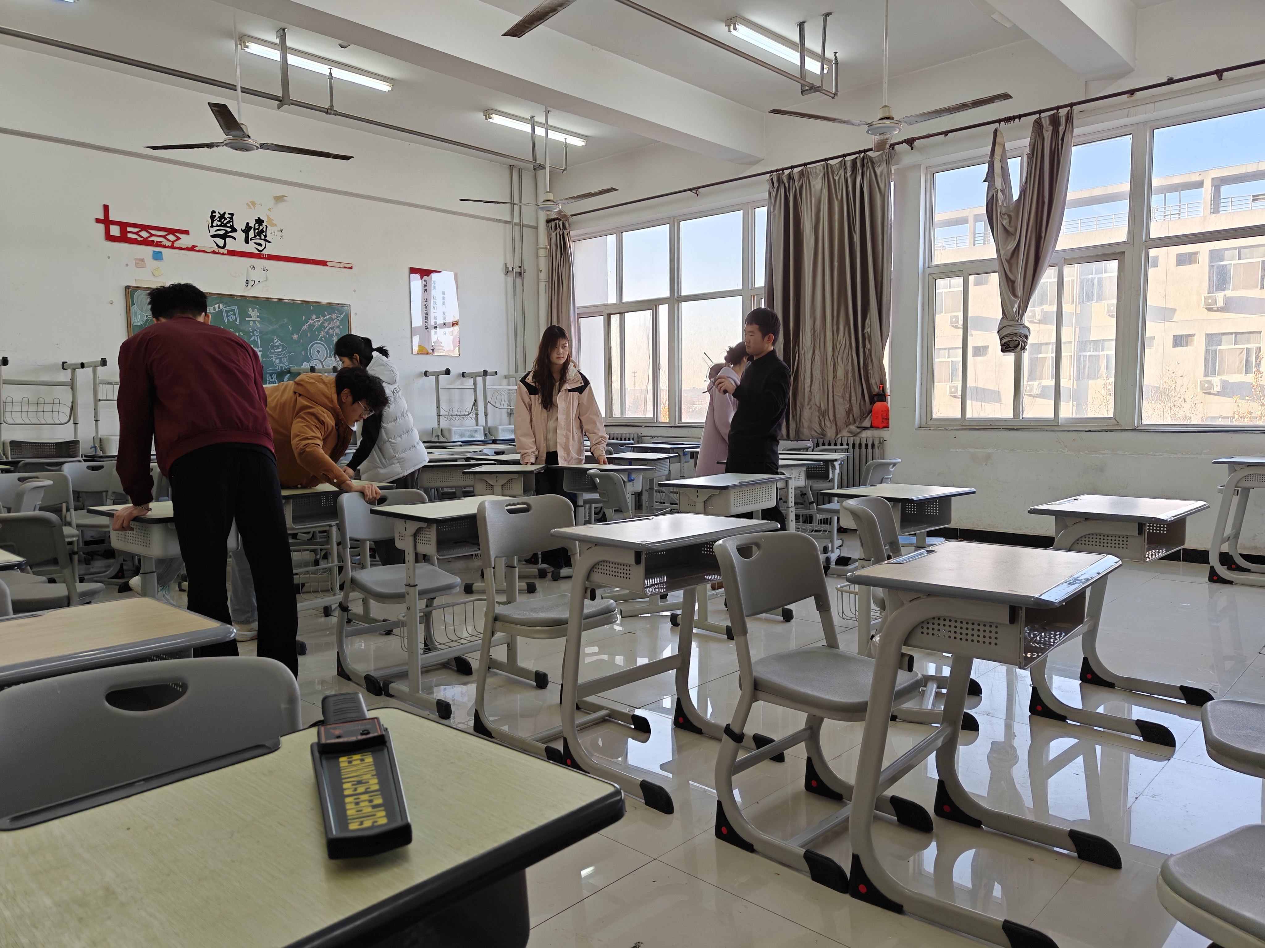 下午四点开始考场布置工作,各二级学院、教务处、学生处、保卫处、总务处及继续教育社会实践协会志愿者的通力配合下,为考试的顺利开展提供了坚实保障。