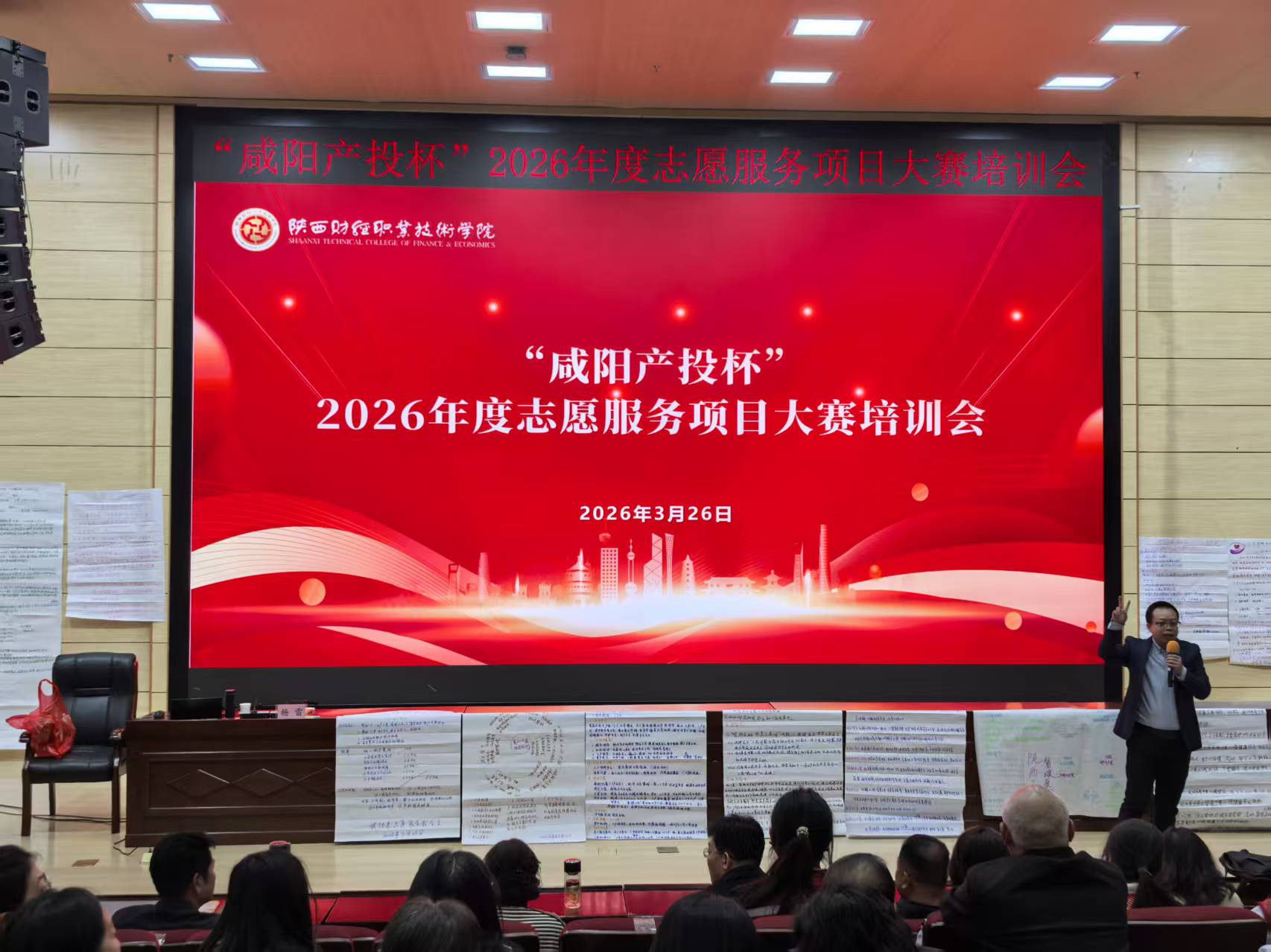 3月26日,“咸阳产投杯”2026年度志愿服务项目大赛赛前培训会在陕西财经职业技术学院举行。本次培训会由咸阳市志愿服务联合会主办,旨在进一步提升咸阳市志愿服务项目的专业化、规范化水平,为即将到来的大赛做好充分准备,同时也标志着大赛正式启动。